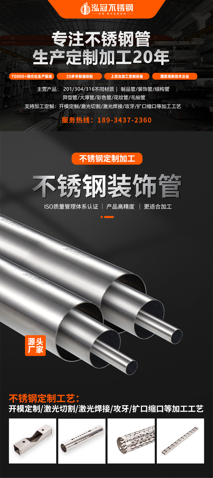 品名:泓冠201不銹鋼裝飾管